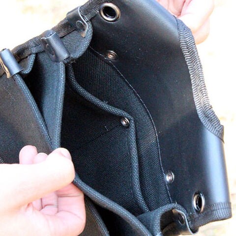 | 落下防止コード取り付け2つ穴 幅60mmまで対応しY型ハーネスにぴったりのワイドなベルトループ ミゼットカッターやニッパーなど収納できる内ポケットやペンやマーカーのサイドポケットなど豊富に収納できる2段型 裏面に「椿」のロゴ入り |