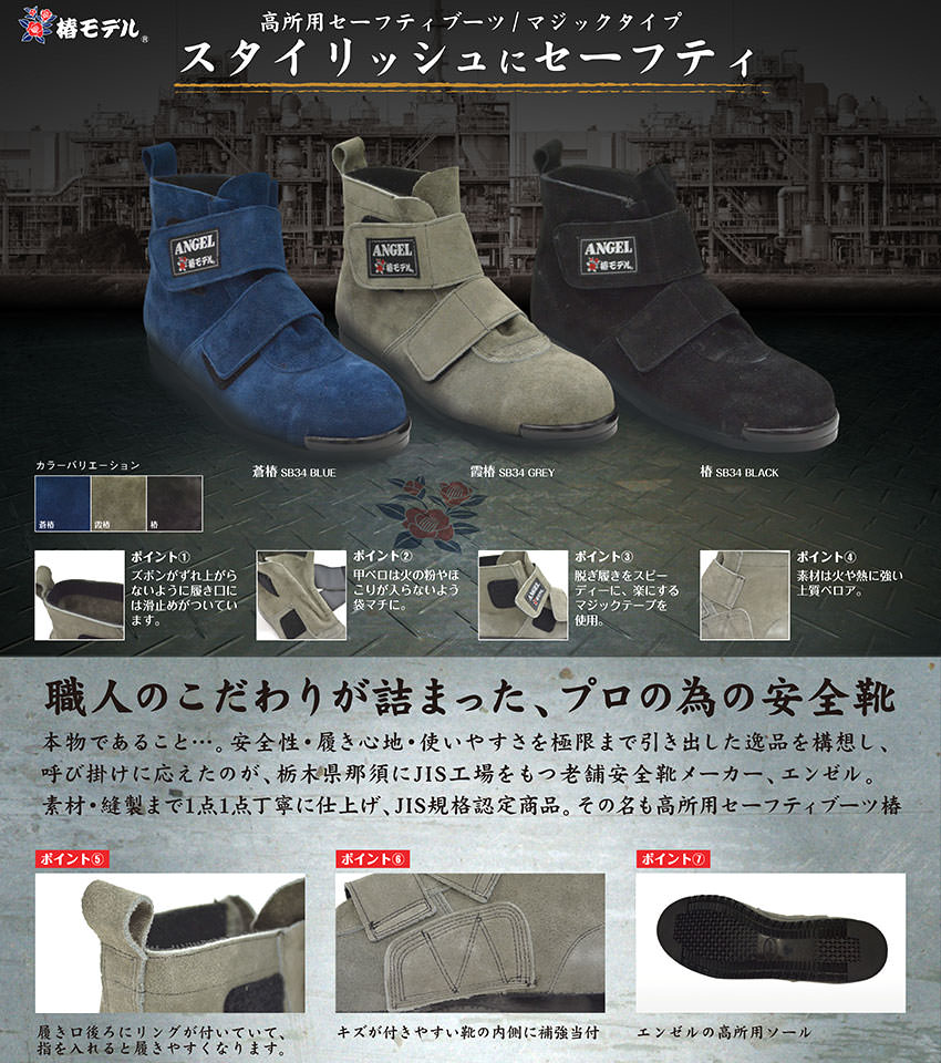 安全靴 ハイカット 椿モデル 高所用セーフティブーツ ショートタイプ 椿 SB34 SB34 マジックテープ JIS規格