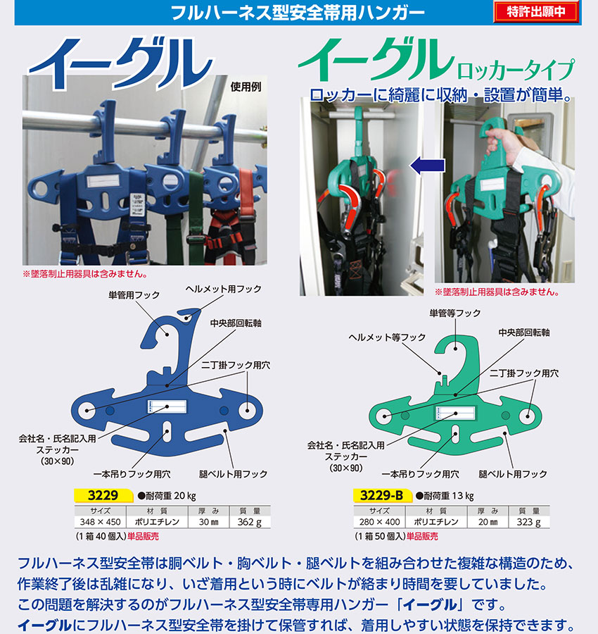 安全用品 つくし工房 フルハーネス型墜落制止用器具ハンガー イーグル ロッカータイプ 3229-B