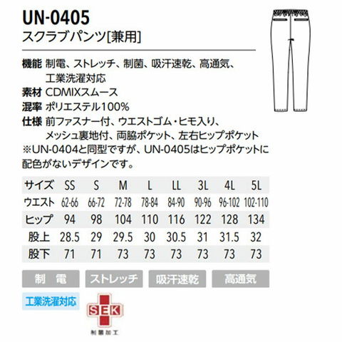 ※UN-0404と同型ですが、UN-0405はヒップポケットに配色がないデザインです。