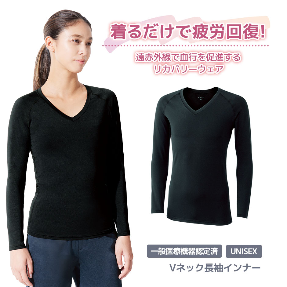 [特別価格] リカバリーウェア 疲労回復 パジャマ 長袖 リラックス 黒 遠赤外線 肩こり 筋肉 リカバリーインナー 男女兼用 一般医療機器 血行促進 快眠 休眠 保温 Tシャツ アンダーシャツ 下着 部屋着 ゆったり 無地 Vネック チトセ UN-0410 UN0410 [メール便対応]