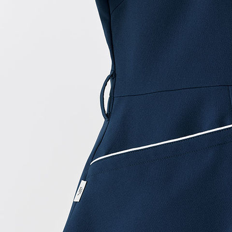 | 後ろファスナー、左胸ポケット、両脇ポケット 右脇ポケットの上にウエストループ付、右脇ポケットにオリジナルピスネーム付 |