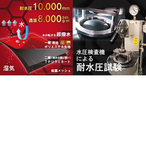 | 耐水圧:10000mm(初期値) 透湿度:8000g/m2・24h(初期値) |