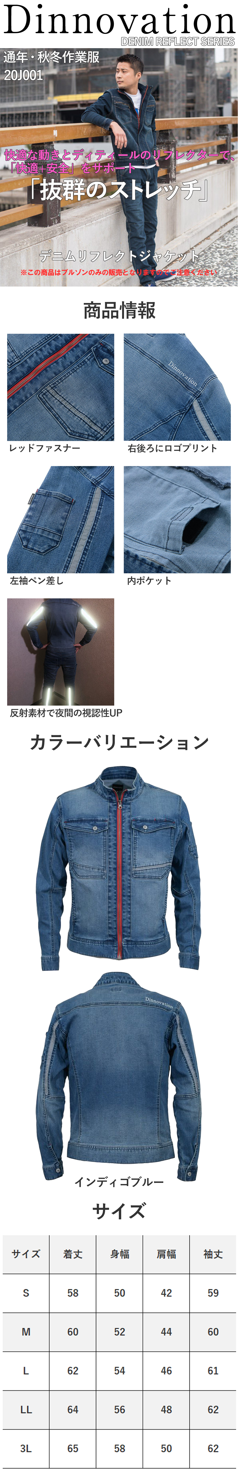 作業服 デニム 作業着 ストレッチ 秋冬 デニムジャケット ジャンパー デニム生地 メンズ AW Dinnovation D-art 20J001 インディゴ ブルゾン 新作 人気 おしゃれ かっこいい 上着 デニム作業服 デニム作業着 ブルゾン ジャケット ワークウェア 仕事 土木 工事 現場