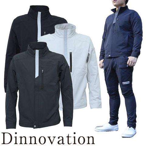 作業服 ブルゾン Dinnovation ディノベーション ナイロンストレッチジャケット 22J001 作業着 ジャンパー ストレッチ 通年 秋冬 黒 グレー おしゃれ かっこいい 人気 ワーク企業 法人 作業 工場 外作業 大きいサイズ LL 3L ユニフォーム