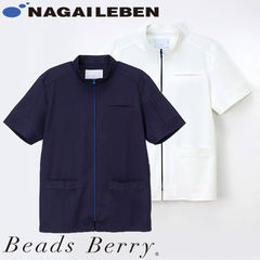 ジャケット 白衣 LH-6262 医療 治療 襟なし ナガイレーベン Naway メンズ 男性用 半袖 医師 医者 看護師 ナース 技師 医療用 病院 作業療法 人気 上衣 医務衣 診察衣 ニット 動きやすい 清潔 快適 ストレッチ かっこいい おしゃれ