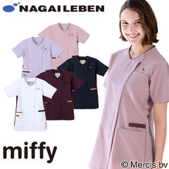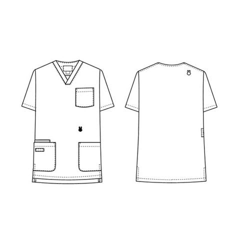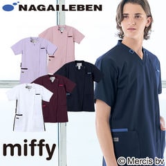 フロントのウエスト部分と後肩にmiffyのワンポイント刺繍がポイントのユニセックススクラブ。
