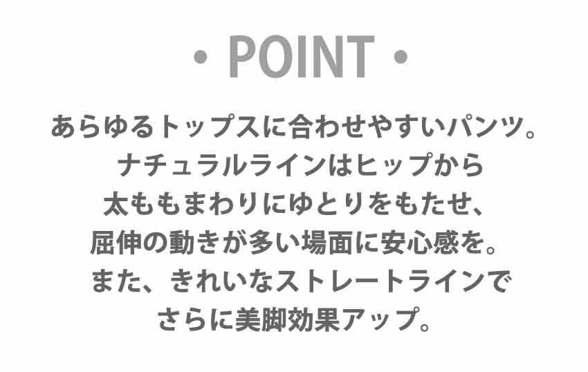 | スタンダードなシルエットのなかに、ヒップから太ももにかけて着用感にゆとりをもたせたナチュラルライン。 |