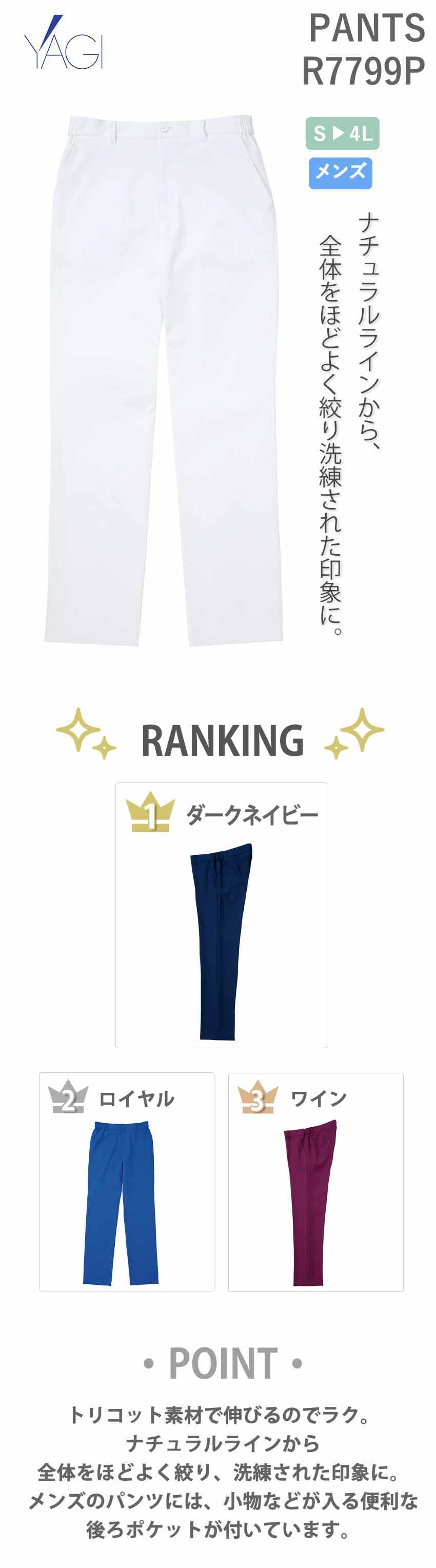 スクラブ パンツ リゼルヴァ RISERVA R7799P 白衣ズボン 白パンツ 白ズボン メンズ 男性用 医療 制服 ユニフォーム 医者 医師 看護師 ナース 歯科衛生士 病院 おしゃれ かっこいい 動きやすい