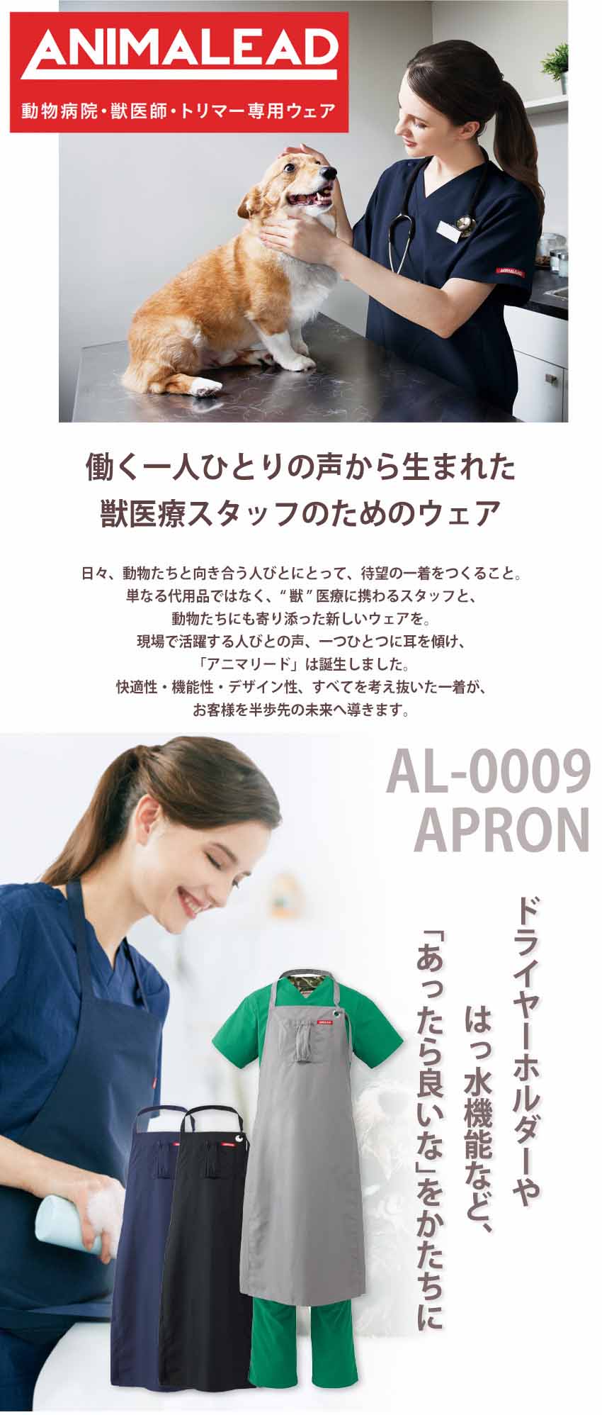 トリマー ケアウェア 袖なしエプロン animalead チトセ トリマーエプロン(ドライヤーホルダー付き) AL-0009 ペットショップ ペットサロン 動物病院