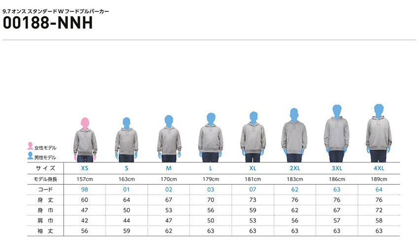 | 9.7oz スタンダードWフードプルパーカー 3XL~4XL |