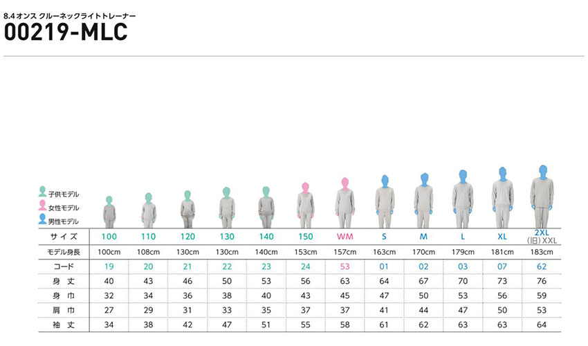 | ※WMサイズ(レディス)は首まわりが広く、袖と身巾がタイトなシルエットです。 |