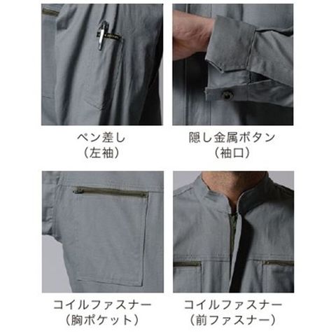 多くのユーザーに愛され続けている超ロングセラーモデル。コットン100%でタフな現場でも着用できるつなぎ服。