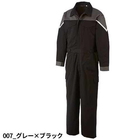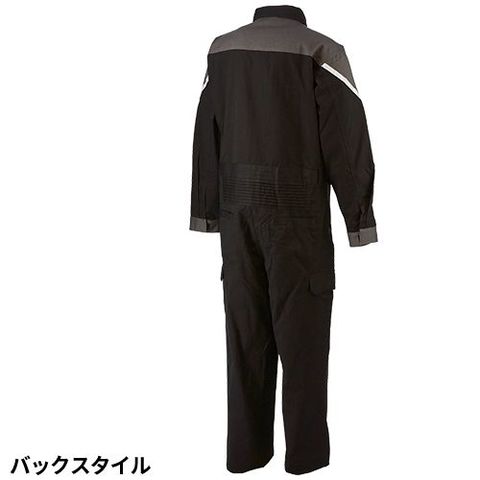 シックなカラーでのツートンツナギ服。カッコよく着こなせるだけではなく、両袖に配置したリフレクターで高い安全性も確保した。