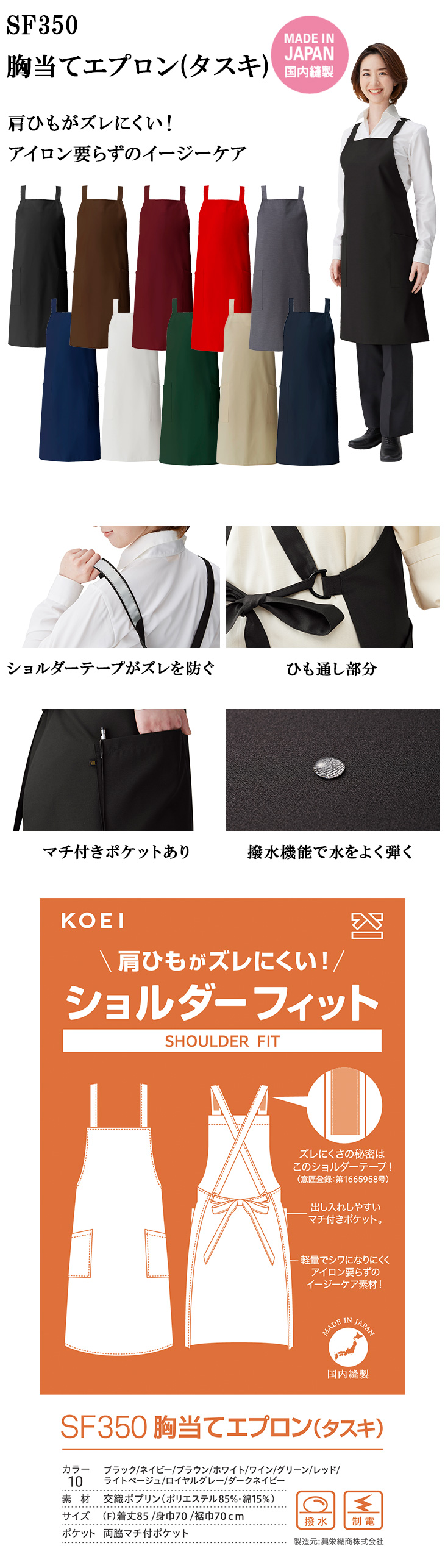 【メール便対応】胸当てエプロン X型 たすき掛け クロス 興栄繊商 KOEI 胸当てエプロン タスキ SF350-BK、SF350-NB、SF350-BR、SF350-WH、SF350-WI、SF350-GR、SF350-RE、SF350-BE、SF350-GY、SF350-DNB 飲食店 制服 ユ