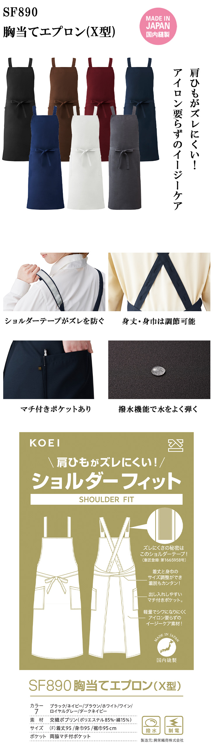 【メール便対応】胸当てエプロン X型 たすき掛け クロス 興栄繊商 KOEI 胸当てエプロン X型 SF890-BK、SF890-NB、SF890-BR、SF890-WH、SF890-WI、SF890-GY、SF890-DNB 飲食店 制服 ユニフォーム レストラン カフェ おしゃれ かわいい 可愛