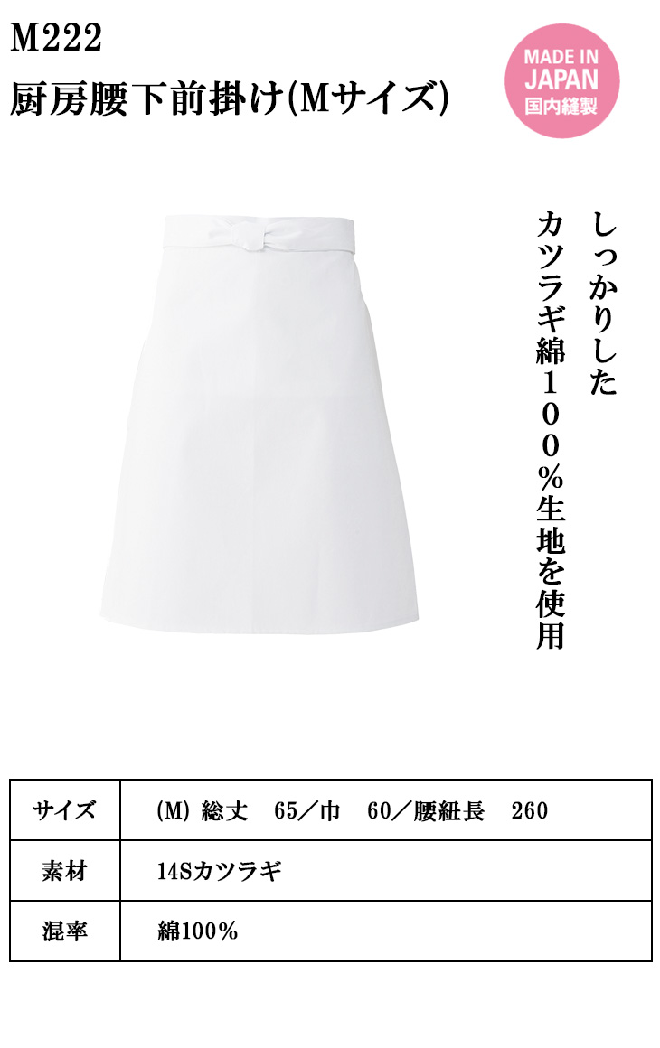 【メール便対応】エプロン 前掛 制服 ユニフォーム ミドル丈 興栄繊商 KOEI 厨房腰下前掛け Mサイズ M222 飲食店 ユニフォーム カフェ レストラン バー 居酒屋 ソムリエ おしゃれ かわいい 可愛い かっこいい