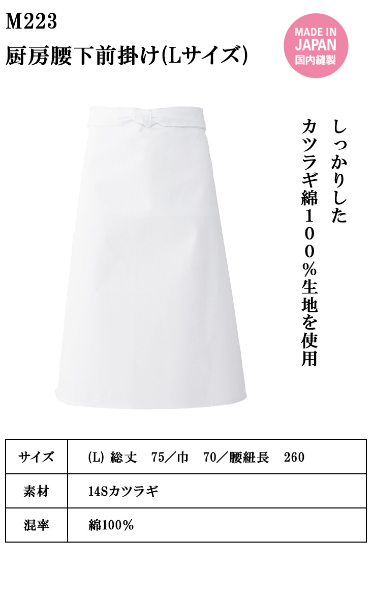 【メール便対応】エプロン 前掛 制服 ユニフォーム ロング丈 長め 興栄繊商 KOEI 厨房腰下前掛け Lサイズ M223 飲食店 ユニフォーム カフェ レストラン バー 居酒屋 ソムリエ おしゃれ かわいい 可愛い かっこいい