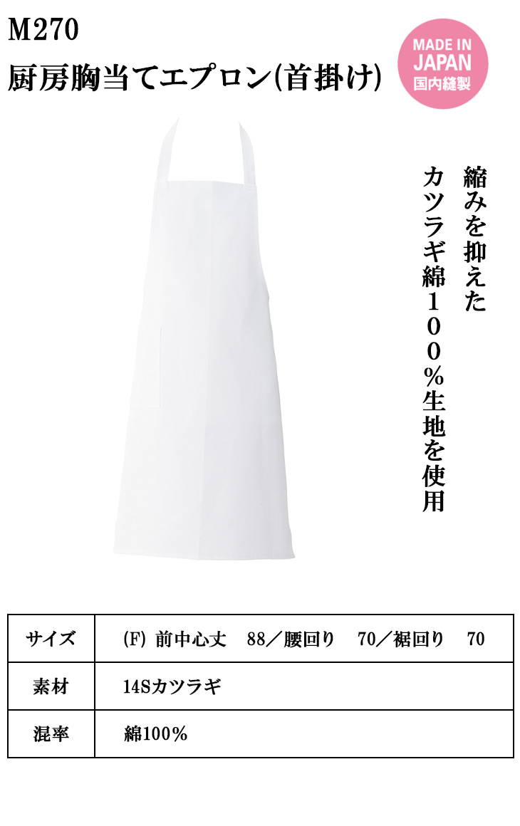 【メール便対応】胸当てエプロン 首掛け 興栄繊商 KOEI 厨房胸当てエプロン 首掛け M270 飲食店 制服 ユニフォーム レストラン カフェ 居酒屋 おしゃれ かわいい 可愛い かっこいい