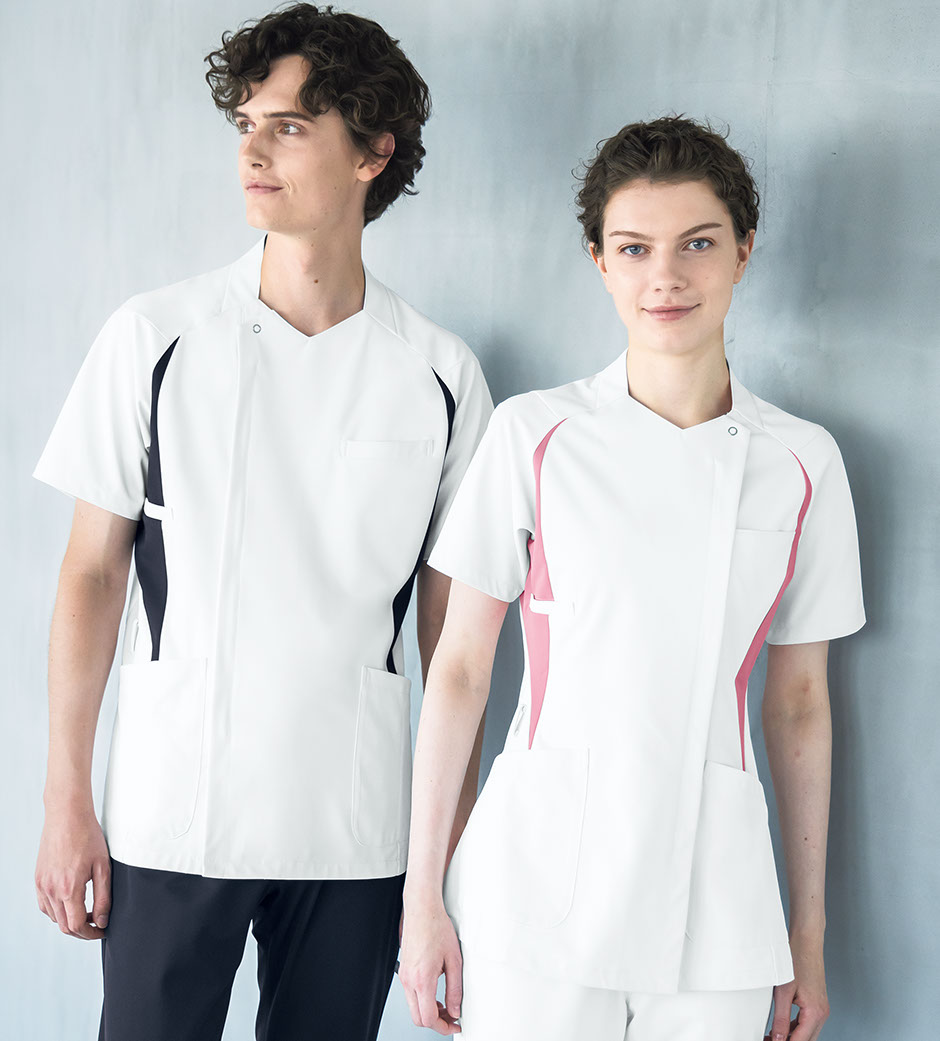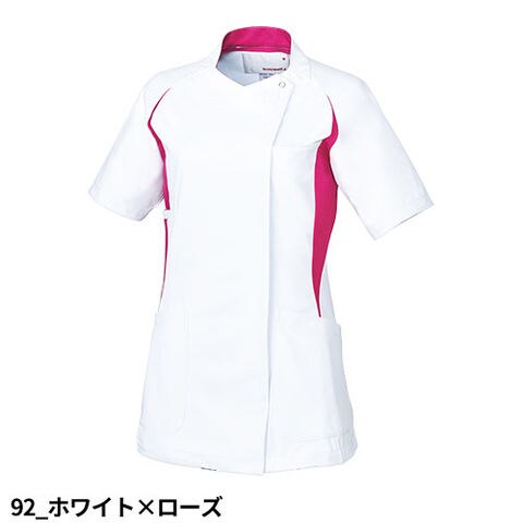 ジャケット ケーシー UQW1052 医療 白衣 レディース 女性用 ルコックスポルティフ ナースウェア 半袖 医療用 病院 看護師 ナース 医者 医師 技師 薄い 吸汗速乾 快適 接触冷感 涼しい 帯電防止 おしゃれ かわいい 可愛い