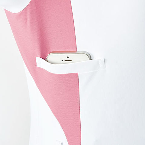 | ・襟の切替え 襟の切替えがバックスタイルのおしゃれなポイント。 ・PHS用ポケット 右脇下には、スマートフォン、PHSを収納可能なポケット付き。 ・キーループ 右脇には落としものを防ぐ便利なキーループ付き。 ・内ポケット(右) 右脇ポケットの内側には筆記具などを整理して収納可能な小ポケット付き。 |