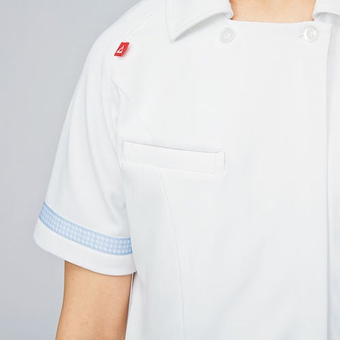 チェックテープ ジャケット UQW1014 医療 白衣 レディース 女性用 ルコックスポルティフ ナースウェア 半袖 医療用 病院 病院見学 看護師 ナース 医者 医師 ストレッチ 動きやすい 透け防止 透けにくい おしゃれ かわいい 可愛い