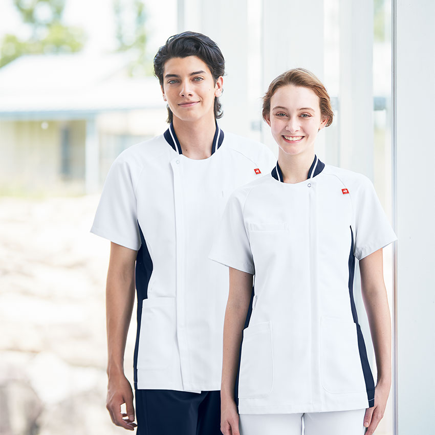 フランス生まれ、世界中で愛されるスポーツブランドの品格が自信を育む。ルコックスポルティフは、1882年にフランスで創業された歴史あるスポーツブランドです。メディカルウェアでは、トリコロールテープのシンボルマークをアクセントに取り入れてきました。スポーツブランドで培った無駄のない美しいシルエットが着る方に品格を与え、プロフェッショナルとしての自信を育みます。