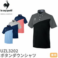 【メール便対応】ニット シャツ ポロシャツ UZL3043 ルコックスポルティフ 介護 ケアウェア ユニセックス 男女兼用 半袖 介護服 仕事着 制服 ユニフォーム 介護士 ヘルパー 介護施設 ボタンダウン UVカット おしゃれ かわいい 可愛い かっこいい