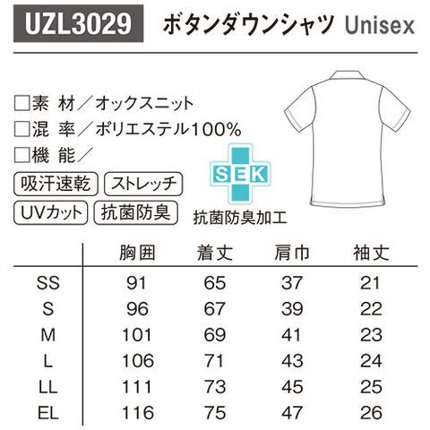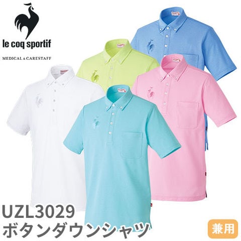【メール便対応】ボタンダウン シャツ ポロシャツ UZL3029 ルコックスポルティフ 介護 ユニセックス 男女兼用 半袖 介護服 仕事着 制服 ユニフォーム 介護士 ヘルパー 介護施設 ポケット付き UVカット おしゃれ かわいい 可愛い かっこいい