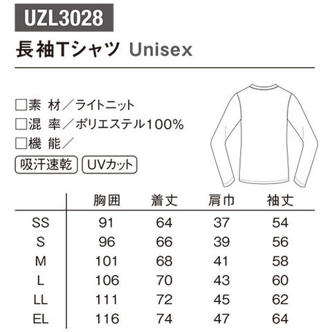 【メール便対応】長袖 Tシャツ UZL3028 ルコックスポルティフ 介護 ケアウェア ユニセックス 男女兼用 介護服 仕事着 制服 ユニフォーム 介護士 ヘルパー 介護施設 シニア 吸汗速乾 快適 UVカット スポーティ おしゃれ かわいい 可愛い かっこいい