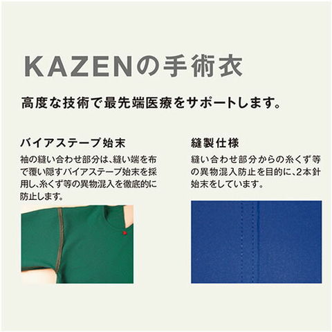 ガウン 手術用 手術衣 オペ着 KAZEN カゼン 手術ガウン 診察衣 135-51・52 医療 制服 ユニフォーム 綿 コットン 医者 縮みにくい 医師 看護師 ナース 病院 メディカル 公式 ウェア