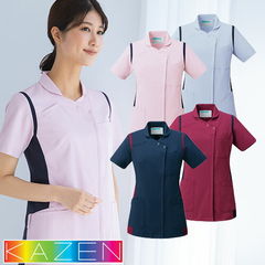 白衣 マタニティ 妊婦用 看護師 ナース ナース服 ナースウェア KAZEN カゼン マタニティジャケット半袖 975-45・48 医療 制服 ユニフォーム 丈夫 医者 工業洗濯対応 丈夫 病院 おしゃれ かわいい 可愛い