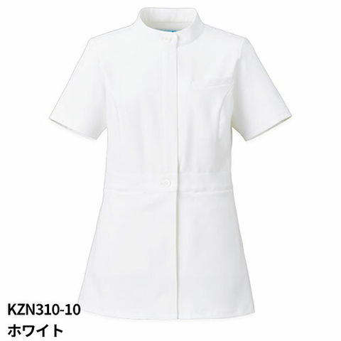 ジャケット 白衣 ケーシー 横掛 KZN310 KAZEN カゼン レディース 女性用 医療 治療 襟なし 半袖 医師 医者 女医 看護師 ナース 医療用 病院 病院見学 作業療法 人気 上品 バンドカラー 可愛い かわいい おしゃれ おすすめ 通販 公式 ウェア