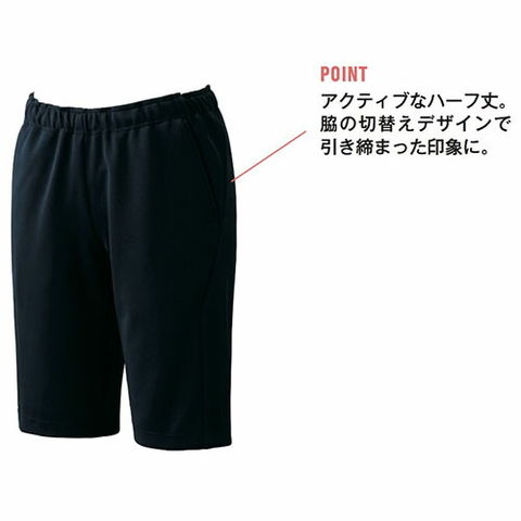 ●総ゴム●両脇ポケット付●アクティブなハーフ丈●脇の切り替えデザインで引き締まった印象に。●ウエストはスピンドル付でサイズ調節が可能。