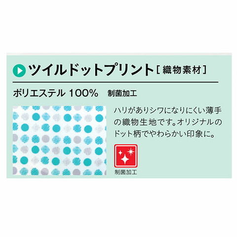 ツイルドットプリント[織物素材]ポリエステル 100% ハリがありシワになりにくい薄手の織物生地です。オリジナルのドット柄でやわらかい印象に。