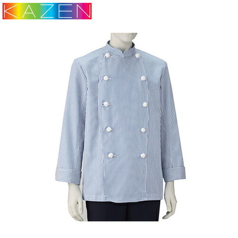 制服 ユニフォーム シェフ KAZEN カゼン 男子コックコート 長袖 410-99 襟付き 飲食店 厨房服 調理服 コック服 レストラン フレンチ イタリアン 中華 おしゃれ かっこいい プロ仕様 デニム ストライプ ダブル 丈夫