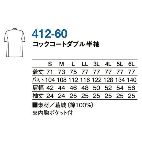 制服 ユニフォーム シェフ KAZEN カゼン 兼用コックコート 半袖 412-60 飲食店 厨房服 調理服 コック服 レストラン フレンチ イタリアン 中華 おしゃれ かわいい 可愛い かっこいい プロ仕様 吸汗 快適 厚手 フード
