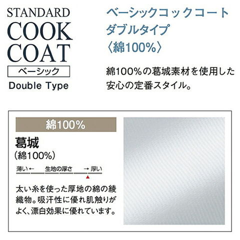 ベーシックコートのダブルタイプ。綿100%の葛城素材を使用した安心の定番スタイルです。