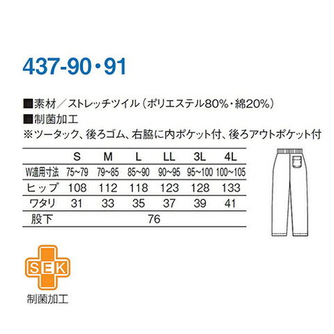 パンツ ズボン 制服 ユニフォーム KAZEN カゼン 男子パンツ 437-90・91 飲食店 メンズ レストラン カフェ 喫茶店 キッチン 厨房 料理人 シェフ ホールスタッフ 食品工場 おしゃれ かっこいい 制菌 ツータック 動きやすい