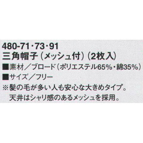 【メール便対応】 衛生帽子 衛生キャップ 三角帽子 メッシュ 2枚 衛生帽 帽子 キャスケット 食品 白衣 衛生衣 女性 レディース KAZEN カゼン 480-91 食品工場 食品加工 厨房 調理 HACCP ハサップ 制服 ユニフォーム 人気 通販
