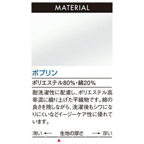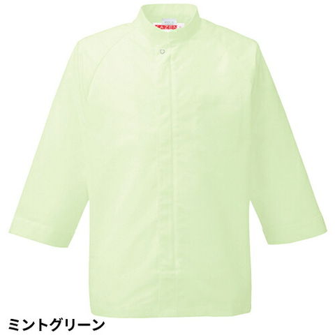 袖は作業しやすい七分袖で、体毛防止加工袖付き。ファスナー仕様で着脱簡単、やさしい色づかいが職場を明るくします。第一ボタンはテーピースナッパーで、比翼ファスナーという仕様となっております。