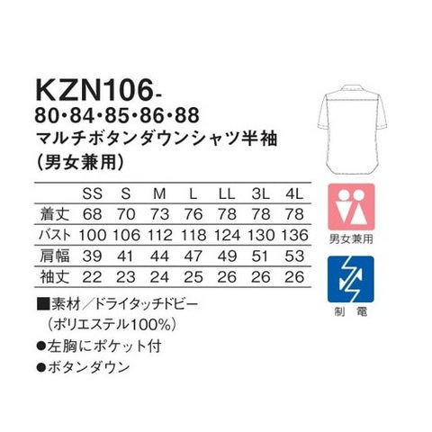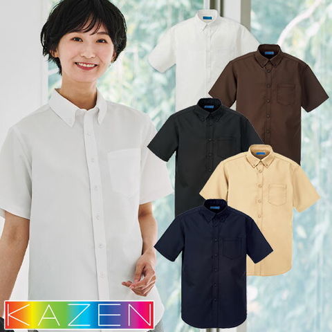 白シャツ ホワイト 黒シャツ ブラック ワイシャツ 制服 ユニフォーム キレイめ クールビズ KAZEN カゼン マルチボタンダウンシャツ 半袖シャツ KZN106-80~88 飲食店 制服 ユニフォーム メンズ レディース レストラン カフェ おしゃれ かわいい 可愛い 透けにくい 乾きやすい