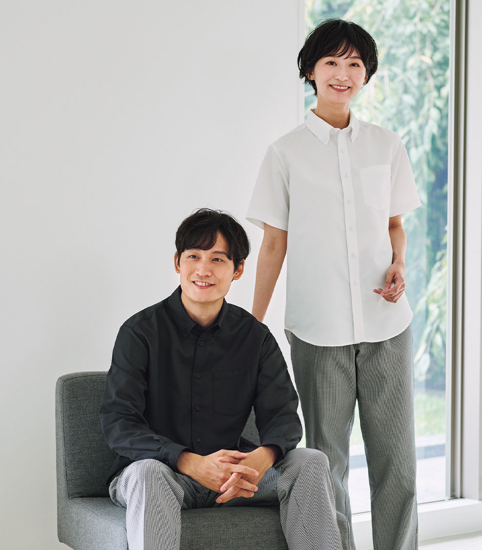 白シャツ ホワイト 黒シャツ ブラック ワイシャツ 制服 ユニフォーム キレイめ クールビズ KAZEN カゼン マルチボタンダウンシャツ 半袖シャツ KZN106-80~88 飲食店 制服 ユニフォーム メンズ レディース レストラン カフェ おしゃれ かわいい 可愛い 透けにくい 乾きやすいのレビュー