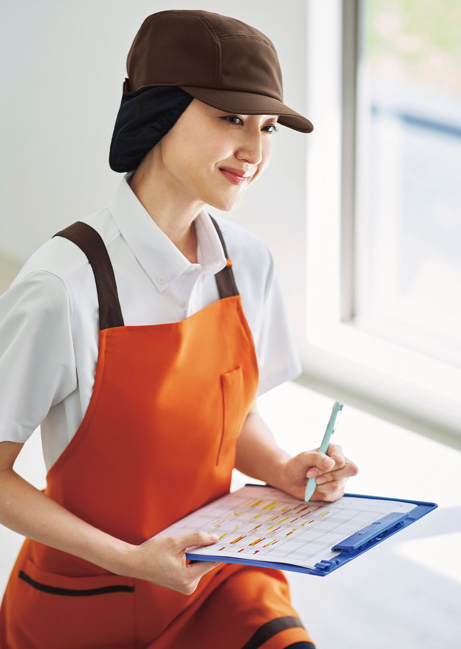 衛生帽子がおしゃれなジェットキャップのデザインに。頭部に合わせた形で包み込み、窮屈感を軽減。