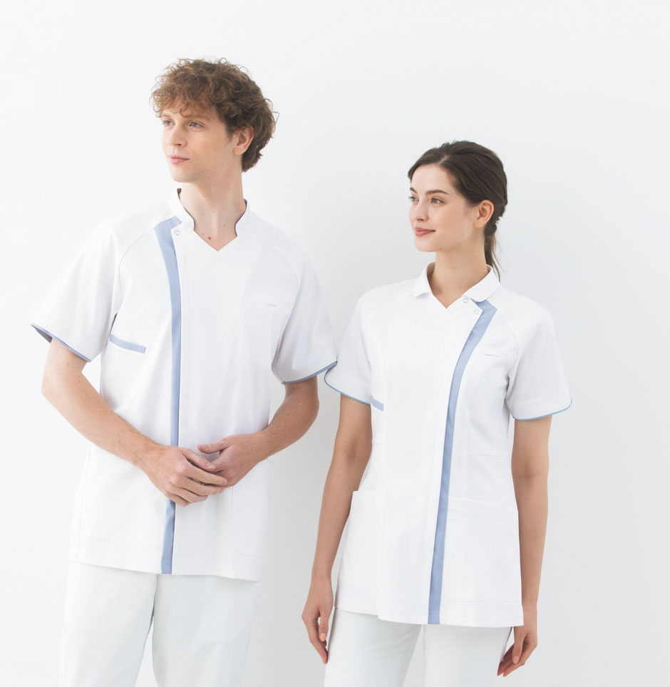 スッキリとした印象を与えるフロントの縦ライン。"当たり前のデザインで終わらせない”、こだわり抜いた配色バランスのスクラブジャケットです。着る人の個性(スタイル)を最大限引き出せるよう、レディス2型・メンズ1型をご用意しました。