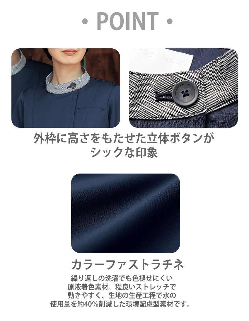 患者さまに安心感をお届けできるよう視線を意識した装いを。エレガントな雰囲気やグレード感と、今までのメディカルウェアにはなかったトレンド感のあるディテールやカラーを取り入れました。上質感を求める病院・クリニックや、差別化をはかりたい施設などにおすすめのオリジナリティあふれるシリーズです