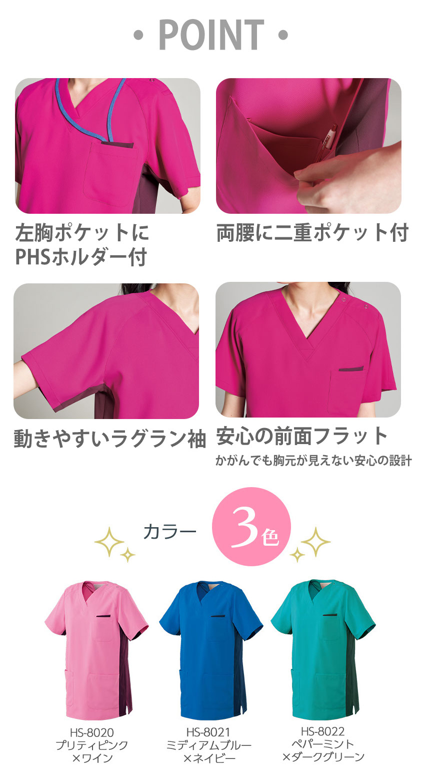 【メール便対応】スクラブ 白衣 医療 HS -8020 ~ -8022 オンワード ONWARD ラフィーリア レディース 女性用 半袖 医者 看護師 ナース 研修医 医療 人気 制服 ユニフォーム 速乾 病院 小児科 介護 リハビリ 可愛い かわいい おしゃれ 動きやすい