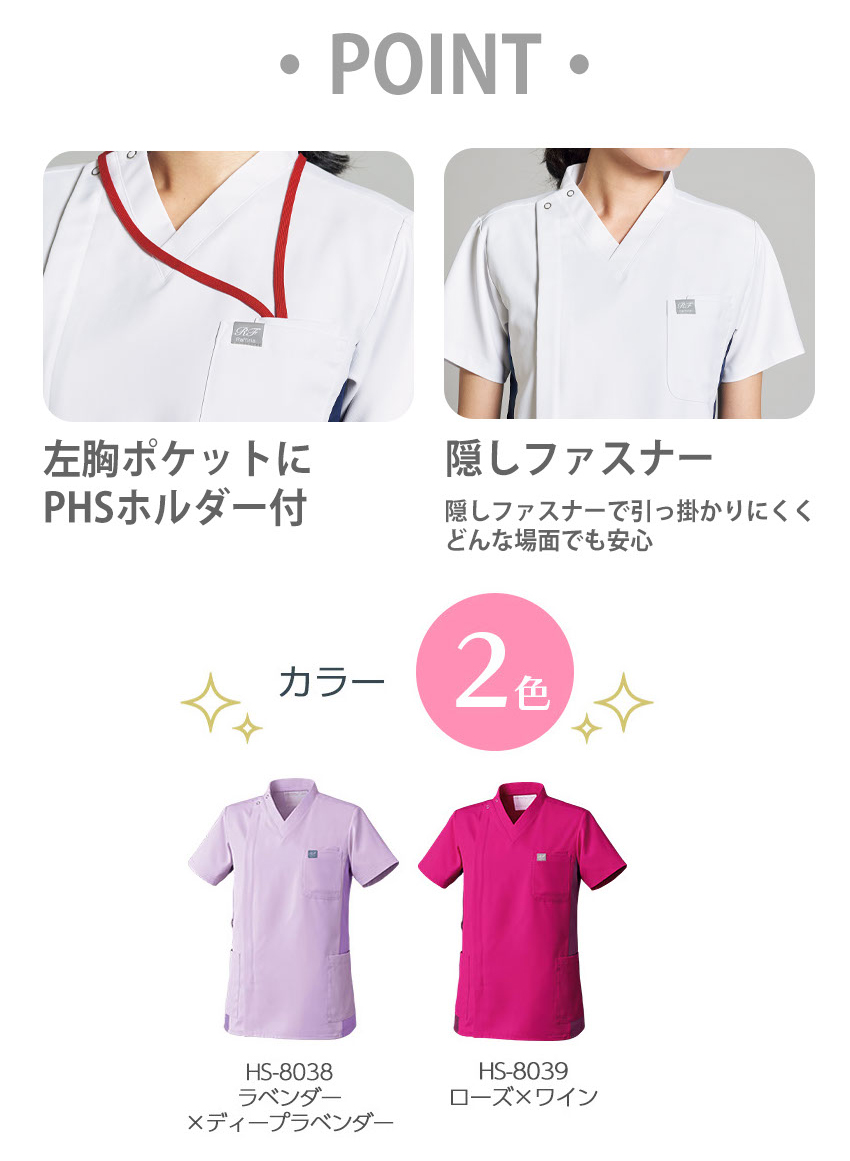 サイドファスナースクラブ 白衣 医療 HS-8038・8039 オンワード ONWARD ラフィーリア ユニセックス 男女兼用 半袖 医者 看護師 ナース 研修医 医療 人気 制服 ユニフォーム 速乾 病院 小児科 介護 可愛い かわいい かっこいい おしゃれ 動きやすい