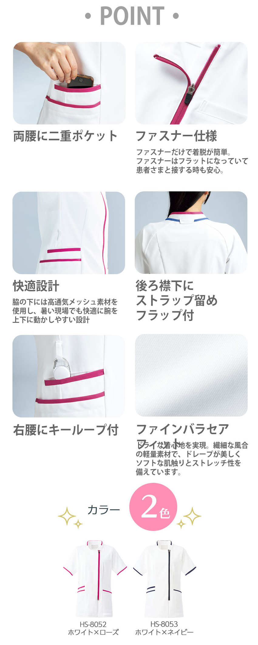 サイドファスナースクラブ 白衣 医療 HS-8052・8053 オンワード ONWARD ラフィーリア レディース 女性用 半袖 医者 看護師 ナース 研修医 医療 人気 制服 ユニフォーム 接触冷感 病院 小児科 薬剤師 介護 可愛い かわいい おしゃれ 動きやすい
