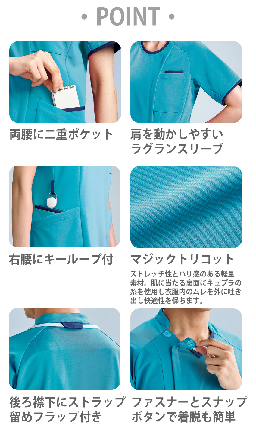 | ●医療現場の動きに適したアクティブ設計●高機能素材で汗をかいても快適さをキープ●袖から脇下をひと繋ぎにしたパターンで腕を上下に動かしたときのつっぱり感を軽減●肩を動かしやすいラグランスリーブでラクな着心地。●ファスナーとスナップボタンひとつで着脱も簡単 |
